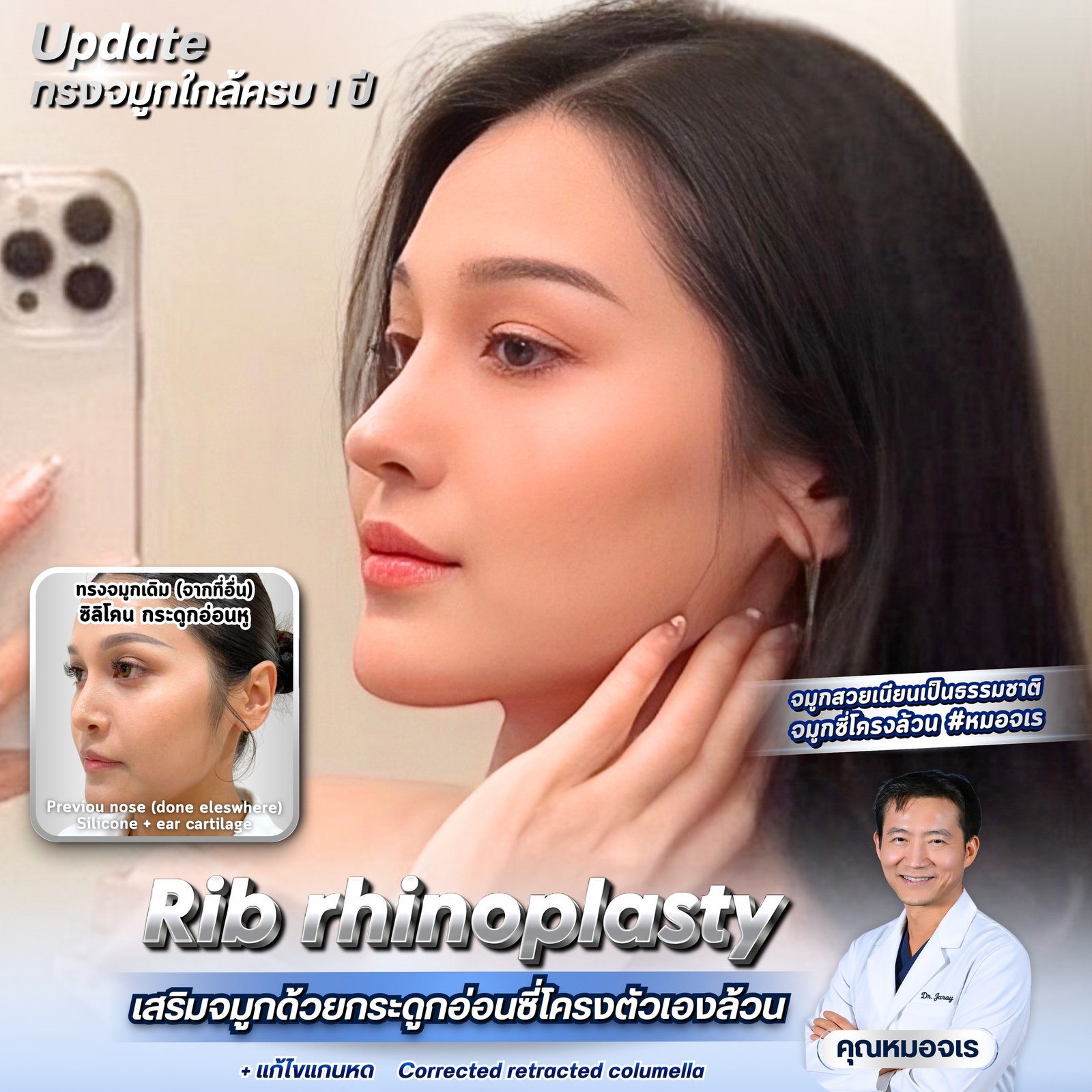 ผลลัพธ์ 1 ปี | เสริมจมูกซี่โครง ดูเป็นธรรมชาติและอยู่ได้นาน