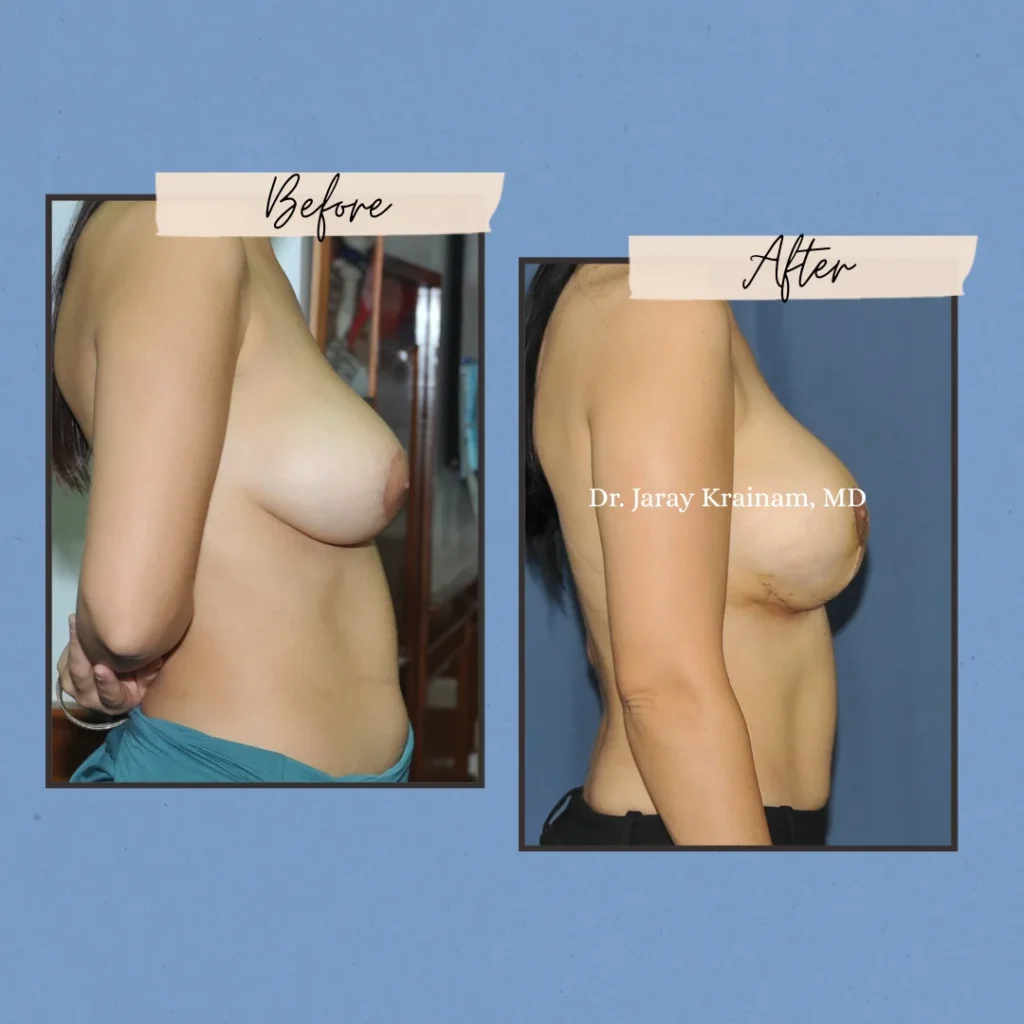 แกลเลอรีนี้นำเสนอเคส ศัลยกรรมเสริมหน้าอกร่วมกับการยกกระชับครั้งที่สอง (Secondary Breast Augmentation Mastopexy) โดยใช้เทคนิคแผลแนวตั้งแบบ Circumvertical หรือที่เรียกว่า Lollipop Lift ดำเนินการโดย นพ.จารย์ เครนาม (Dr. Jaray Krainam, MD) หนึ่งในศัลยแพทย์เสริมหน้าอกด้านความงามที่มีประสบการณ์มากกว่า 20 ปีในประเทศไทย