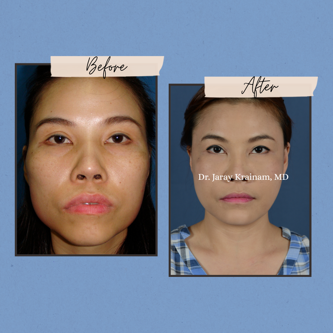 ศัลยกรรมลดโหนกแก้มในผู้หญิง, ศัลยกรรมปรับกระดูกคาง, การตัดไขมันกระพุ้งแก้ม และการฉีดไขมันใต้ตา — ภาพเปรียบเทียบก่อนและหลังการผ่าตัด