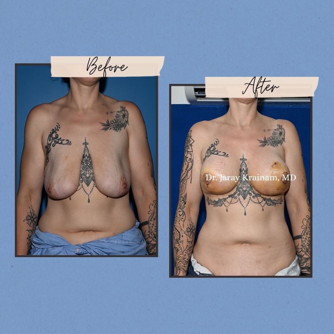 ภาพก่อนและหลังการผ่าตัดชุดนี้แสดงให้เห็นถึงผลลัพธ์ที่โดดเด่นจากการทำ Vertical Mastopexy ร่วมกับ Breast Augmentation ซึ่งเป็นเทคนิคขั้นสูงที่ออกแบบมาเพื่อยกกระชับหน้าอกที่หย่อนคล้อย พร้อมเพิ่มปริมาตรและปรับรูปทรงให้สวยงามมากยิ่งขึ้น หัตถการนี้ช่วยปรับรูปทรงเต้านมให้กระชับ ดูอ่อนเยาว์ เพิ่มความพุ่ง (projection) และความสมมาตรของหน้าอก โดยดำเนินการด้วยความแม่นยำโดยศัลยแพทย์ผู้มีประสบการณ์…